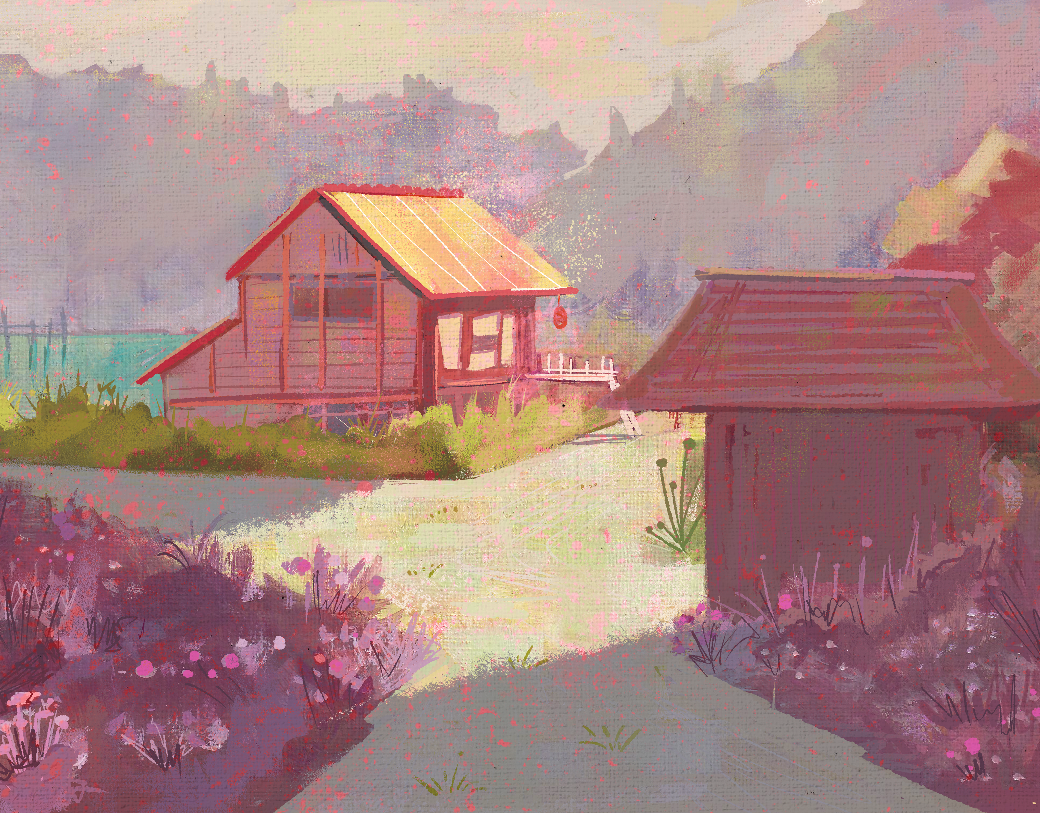 Background Design (Gouache and Digital) - Village
